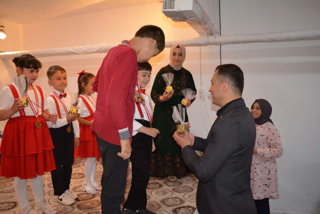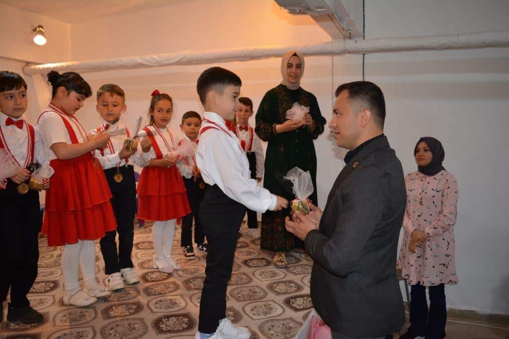 Birinci sınıf öğrencileri, sergiledikleri Ateş Böceği dans gösterisi, şiir dinletisi ve müzikli dans performanslarıyla izleyicilere duygu dolu anlar yaşattı. Program sonunda ise en özel anlardan biri yaşandı; öğrencilerin anneleri çocuklarına madalyalarını takdim etti. Kaymakamımız Sn. Alper Kırgıl da minik öğrencileri, hazırlanan hediyelerle ödüllendirerek onların sevincine ortak oldu.